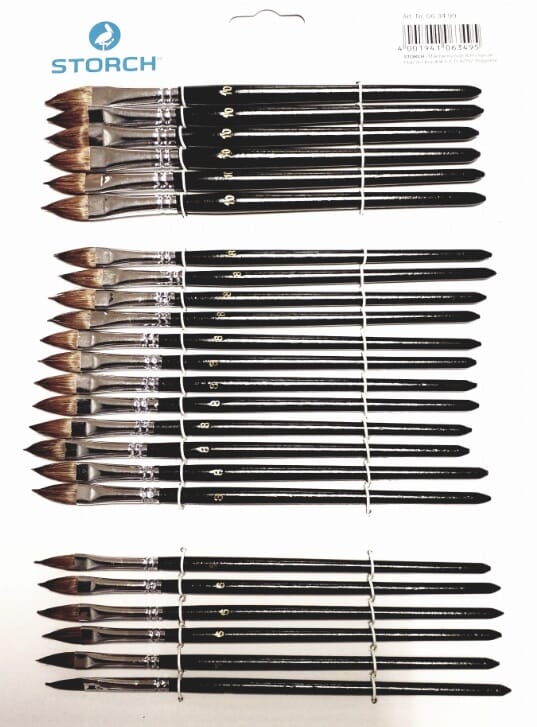 Premium kvalitet med kuhårsbust, med spiss bust og forniklet hylse.På kart = 24 pensler.