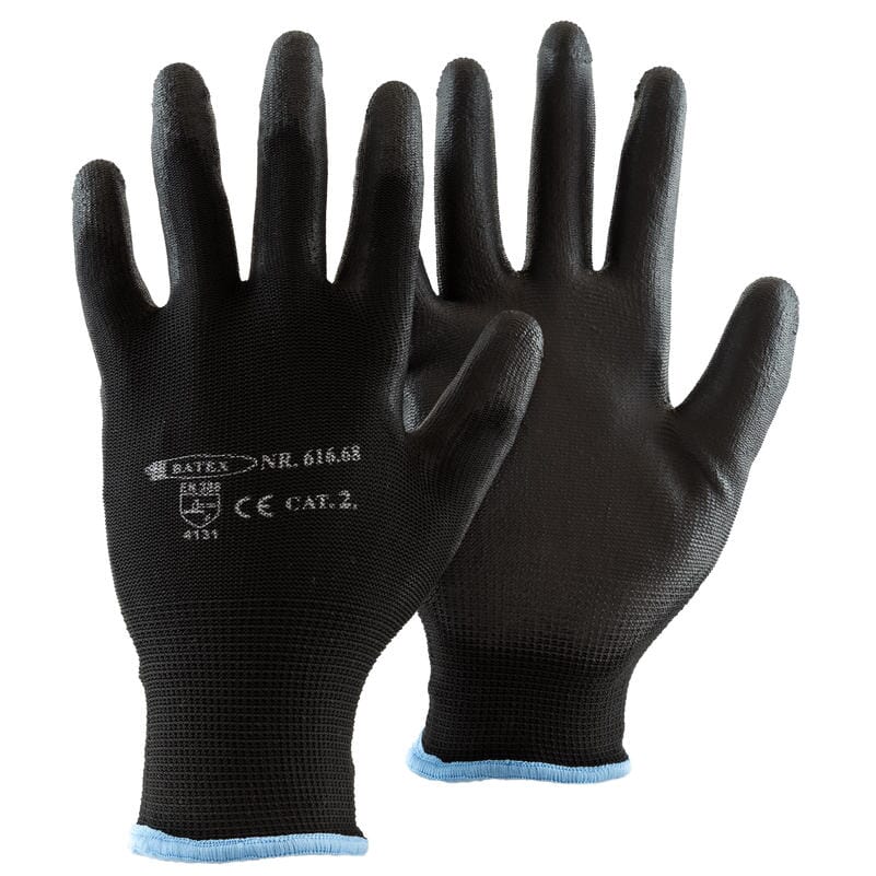 Mekanikerhanske i tynt sort polyester med tynt sort glatt PU belegg. En prisgunstig hanske med god fingerfølsomhet som passer til allsidig arbeid som transport, lagerarbeid, malerarbeid m.m. PU hansker er pustende, men har ikke samme beskyttelse og sliteegenskaper som nitrilbelagte hansker.