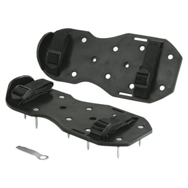 Robuste piggsko som festes utenpå arbeidssko. Gir stabil gange og reduserer merker i fersk avrettingsmasse under gulvarbeid.